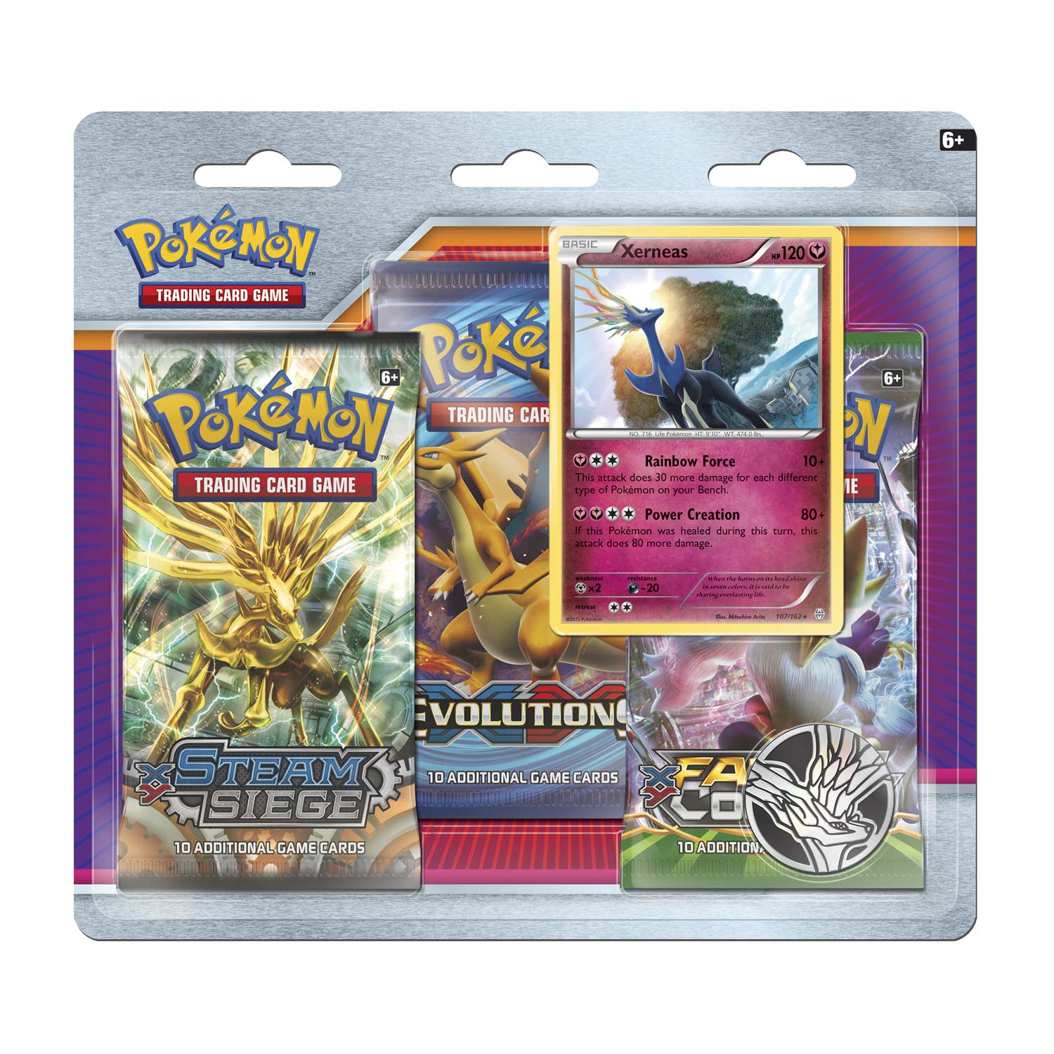 Xerneas is a fairy type pokemon. If xerneas is in a battle, its form will be the active form, which has yellow horns and rainbow details. Includes 4 pokemon booster packs containing 10 cards each to advance your collection to a new level.