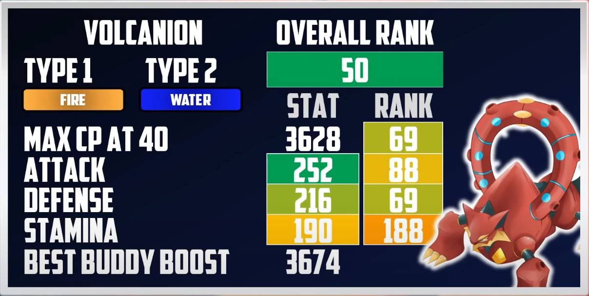 Statistiques, faiblesses, attaques apprises, talents et types, position dans les informations générales : Volcanion is currently available in six variants on pokémon vortex; Volcanion is the only known pokémon with the type combination of fire/water.
