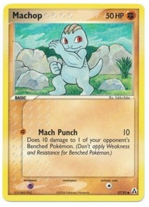 Machop is a humanoid, bipedal pokémon that has gray skin. When ever a pokémon family is mentioned, it means all of the pokémon that are related by evolution. Machop has one type, fighting. Machop's fighting type gives a damage bonus with most fighting moves.